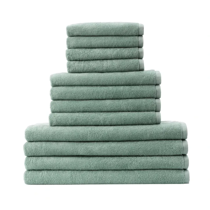 Ekstra stort håndklædesæt i Damask Terry-kvalitet med gæstehåndklæder, håndklæder og badehåndklæder i 100 % bomuld og tidløst design.
