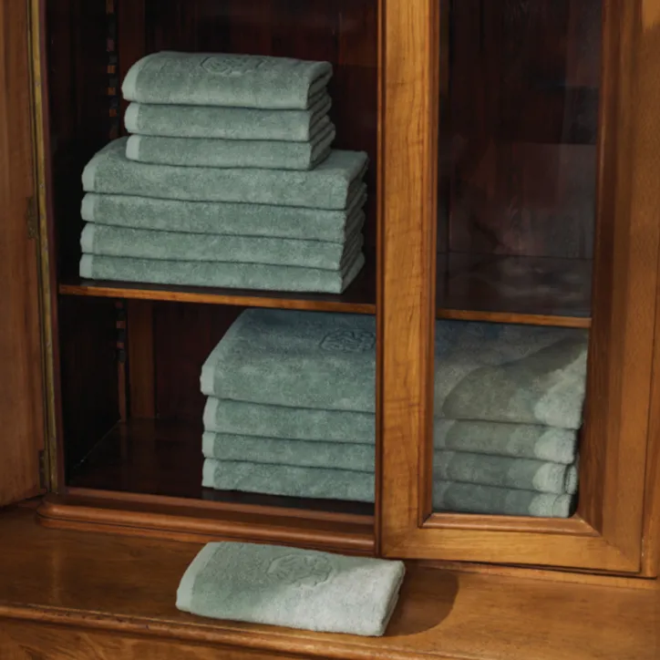 Damask Terry håndklæderne fra Georg Jensen Damask er jacquardvævede i 100 % bomuld med løkker af dobbelttvundne og kæmmede garner. Vævningen giver en blød, slidstærk og glansfuld overflade med høj absorbering og et elegant, struktureret udtryk. Det indvævede logo tilfører et diskret designelement, der understøtter håndklædernes rolige og gennemførte æstetik. Sættet er udviklet til daglig brug og bevarer både form og komfort over tid. Håndklæderne fås i farverne Taupe og Sage Green, som begge er udvalgt for deres tidløse og harmoniske udtryk. Produkterne er certificeret efter OEKO-TEX® STANDARD 100 og fremstillet med støtte til ansvarlig bomuldsproduktion gennem Better Cotton.