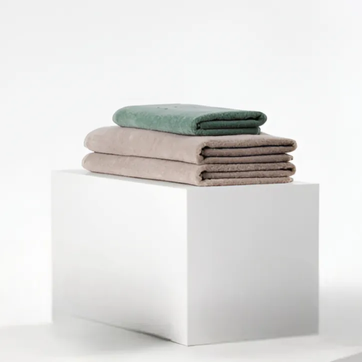 Håndklædesæt i Damask Terry med indvævet logo, jacquardvævet i 100 % bomuld og tilgængeligt i farven Taupe eller Sage Green.