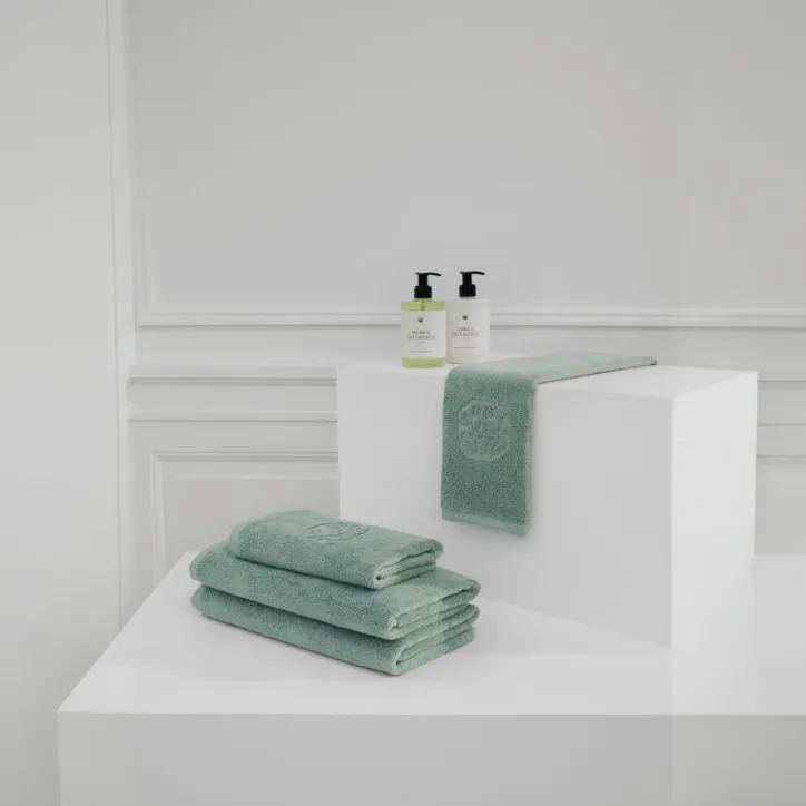 Damask Terry håndklæderne er jacquardvævede i 100 % bomuld med løkker af dobbelttvundne og kæmmede garner. Vævningen giver en blød, slidstærk og absorberende kvalitet med et elegant udtryk. Det indvævede Georg Jensen Damask-logo tilfører et diskret designelement. Bundlet fås i enten Taupe eller Sage Green, som begge er udviklet til at skabe et harmonisk og tidløst helhedsindtryk. Farverne understøtter håndklædernes struktur og materialekarakter uden at dominere rummet.