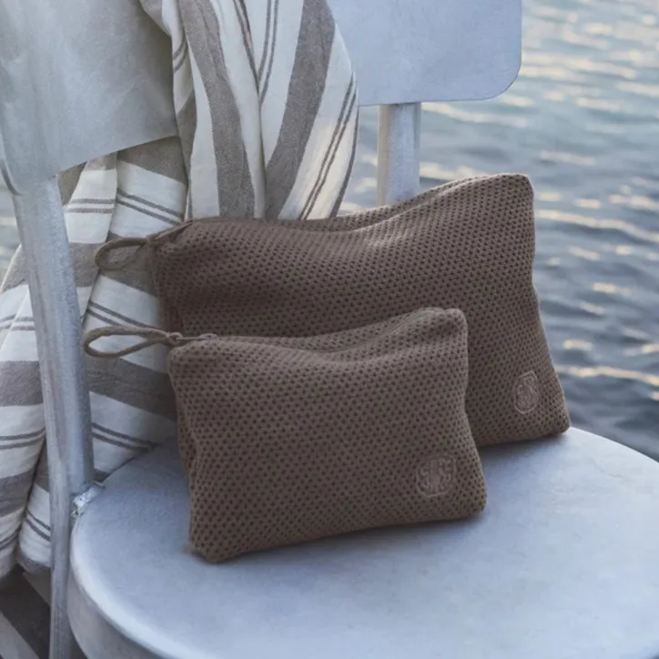 Honeycomb toilettasken fra Georg Jensen Damask er enkel, tidsløs og pæn at have på badeværelset og med på rejsen. Tasken og kosmetikpungen er syet i et honeycomb-vævet tekstil, der er inspireret af en 100 år gammel væveteknik, og er forsynet med et Herringbone-stof. Begge tasker er certificeret STANDARD 100 by OEKO-TEX®.