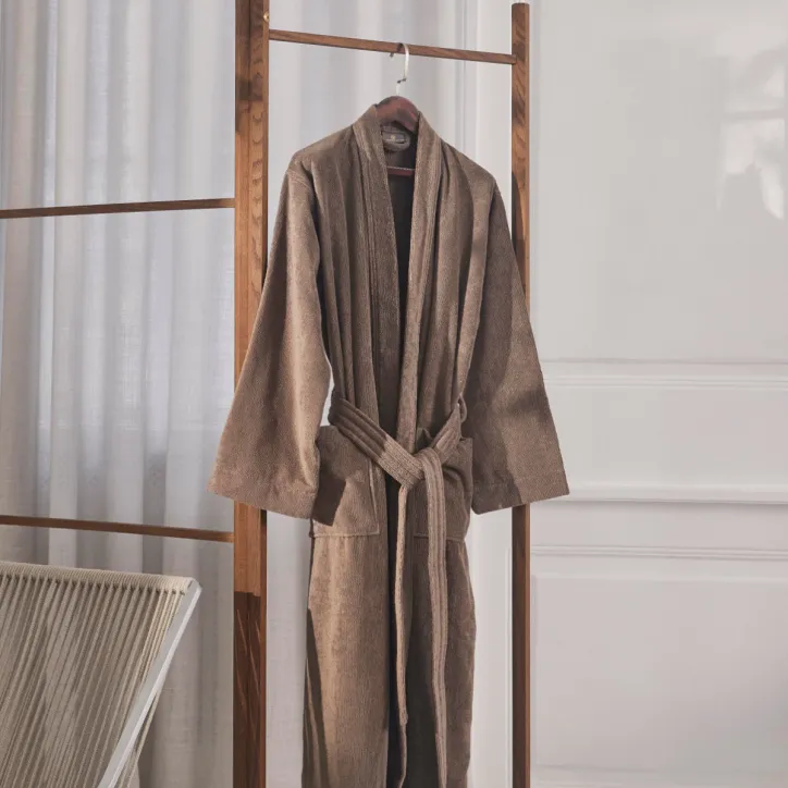 Dawn badekåben fra Georg Jensen Damask er designet til søndage og kolde vinterbade. Den er lavet af 100% bomuldsfrotté, der holder kroppen varm og suger fugten, når du har været i vandet. Badekåben har lommer med et broderet Georg Jensen Damask-logo og er en del af den nye eksklusive loungewear-serie. Morgenkåben er certificeret STANDARD 100 by OEKO-TEX®. Når du vælger dette produkt fra Georg Jensen Damask, støtter du en ansvarlig bomuldsproduktion gennem Better Cotton.