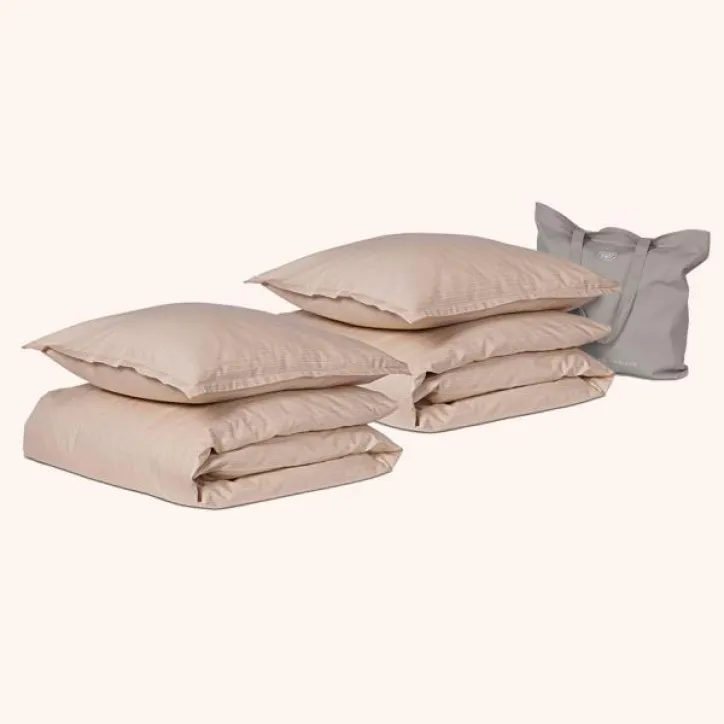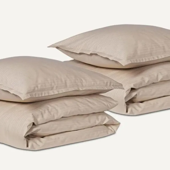 2 sæt sengetøj i 100 % bomuldssatin med elegant stribemønster og bæredygtige certificeringer. Farve: Sand.