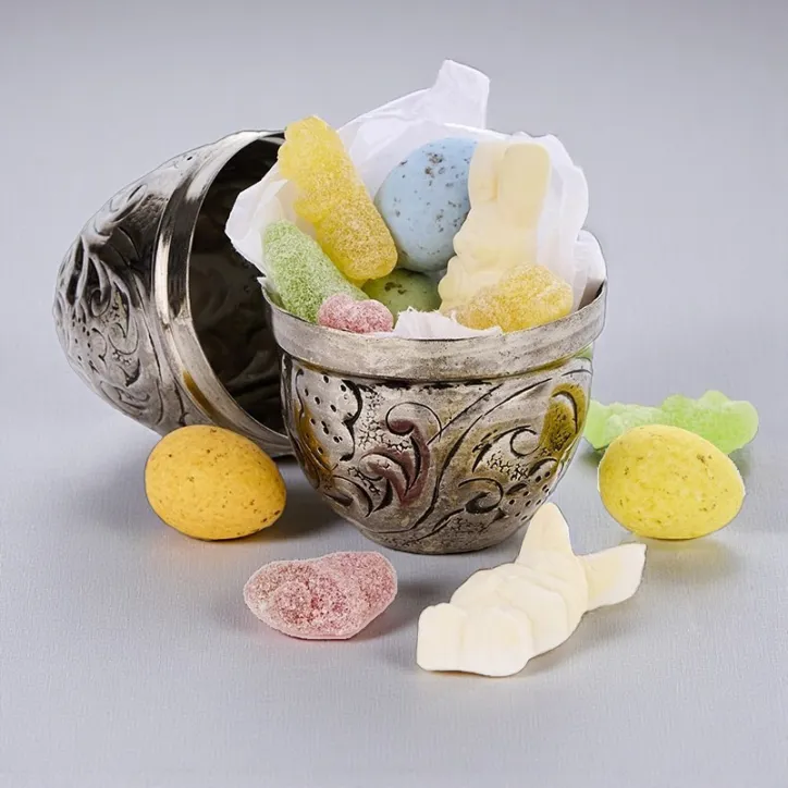 Sølvægget er mere end blot en smuk indpakning. Med sit tidløse udtryk egner det sig perfekt til servering af godter, nødder eller små påskefavoritter – år efter år. Stil det frem på påskebordet, i stuen eller køkkenet, og lad det blive en del af indretningen. En gave, der lever videre, også når indholdet er nydt.